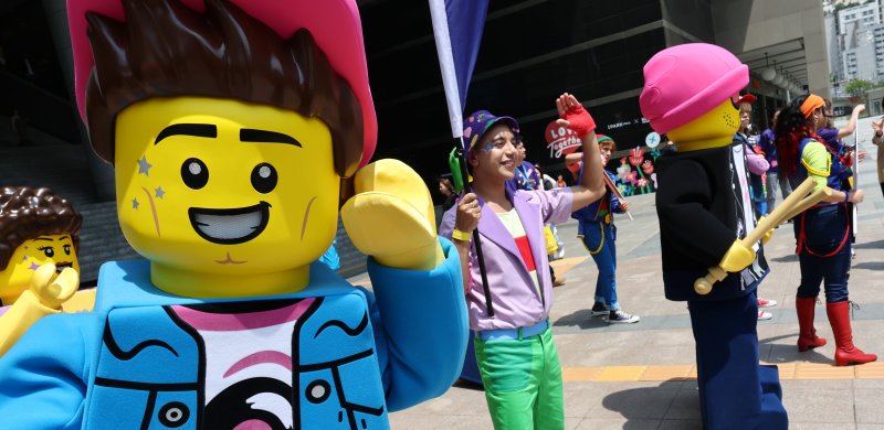 레고랜드 코리아가 서울 용산역광장에서 ‘레고 페스티벌’을 홍보하기 위한 도심 속 깜짝 이벤트 ‘플레이 팝’ 행사를 펼쳤다고 13일 밝혔다.