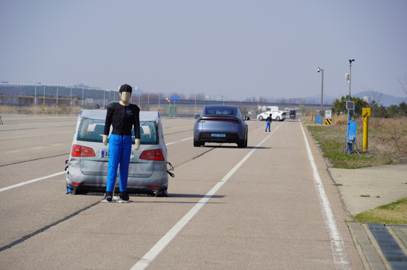 차량 고장을 모사해, 정차된 차량 후미에 사람이 있는 경우에는 △인체모형을 인지해 정치한 차량 3종 △자동차와 인체모형을 인지 못해 충돌한 차량 2종 △차량만 감지해 인체모형 충돌 후 정지한 차량 1종 등으로 나타났다.