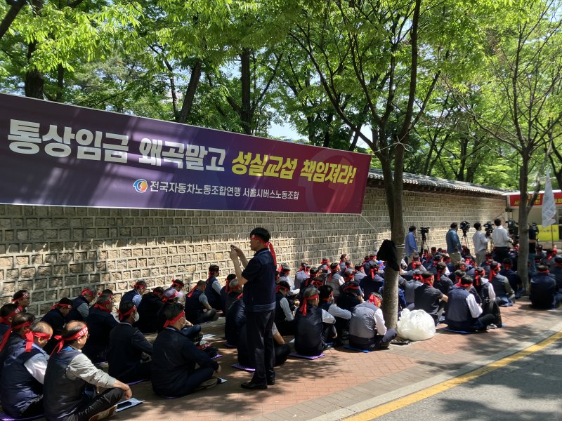 박점곤 노조위원장은 "서울시와 사용자들은 노동자의 처지는 무시한 채 대법원 결정에 따른 통상임금 재산정을 포기하라고 한다"며 "이를 포기하지 않으면 올해 임단협 체결을 위한 대화를 일절 하지 않겠다며 우리를 파업으로 몰고 가고 있다"고 밝혔다.