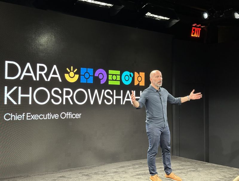 다라 코스로샤히 우버 최고경영자(CEO)가 14일(현지시간) 미국 뉴욕 오큘러스에서 우버의 혁신 기술과 신규 서비스를 소개하는 연례 최대 규모의 행사 '2025 고겟'에서 우버의 비전을 설명하고 있다. 사진=홍창기기자