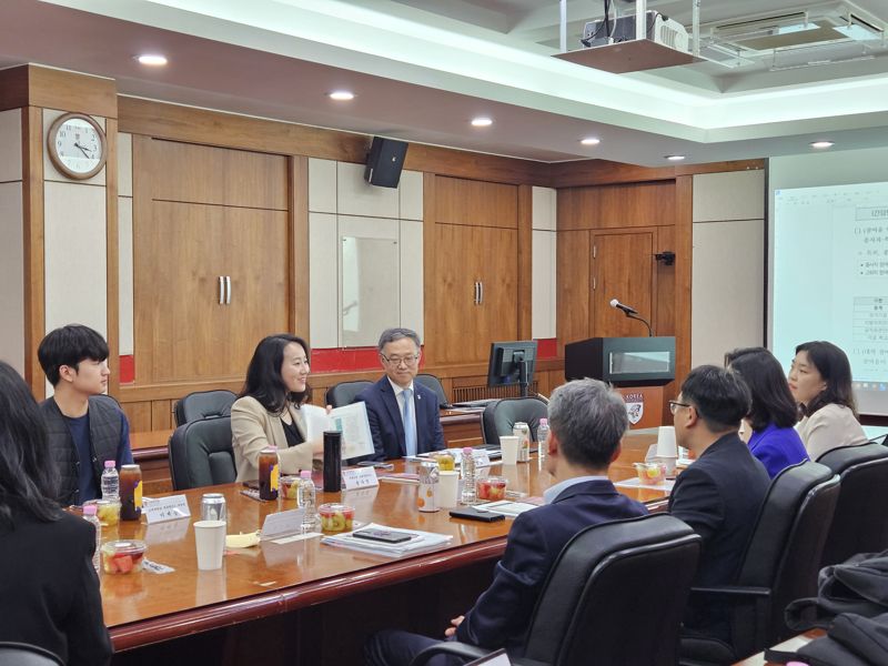 지난 13일 고려대 세종캠퍼스에서 진행된 '대학 폭력예방교육 내실화 위한 현장점검'에서 고려대 관계자와 여성가족부·교육부 담당자들이 참여율 제고를 위한 방안을 논의 중이다. 사진= 박지영 기자.