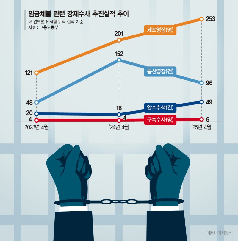 고용노동부가 임금체불에 대한 엄정 대응 기조를 유지하면서 올해 들어 강제수사가 크게 늘었다. 이로 인해 체불임금도 빠르게 청산되는 사례가 이어지고 있다.