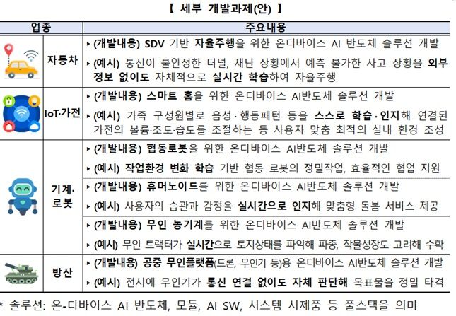 또 레퍼런스 확보를 통한 새로운 비즈니스 기회도 생겨날 것으로 기대된다. 업종별 수요기업은 제품에 최적화한 맞춤형 온-디바이스 AI 반도체를 탑재해 제품의 첨단화를 달성하고, 대외 AI 반도체 공급망 불확실성을 해소할 수 있는 국내 밸류체인을 구축할 수 있을 것으로 예상된다.