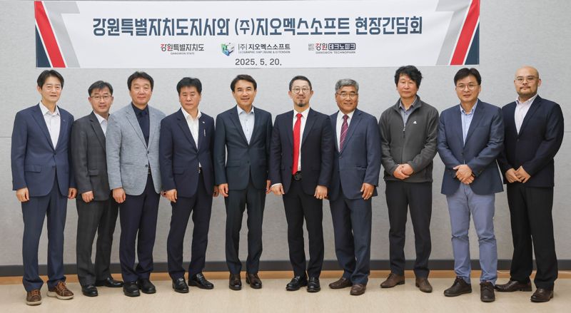 강원특별자치도는 김진태 지사와 허장현 강원테크노파크 원장이 20일 춘천에 위치한 혁신기업 지오멕스소프트를 방문해 기업의 성장 사례를 확인하고 안상섭 대표로부터 현장의 애로사항을 청취하는 시간을 가졌다고 밝혔다.