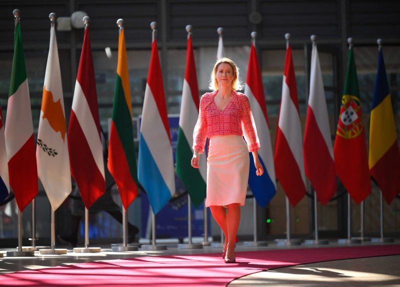 20일 브뤼셀 EU 본부에서 열린 국방위원회 회의에 참석하기 위해 유럽 외교안보정책연합 카자 칼라스가 회의장으로 향하고 있다. AFP 연합뉴스