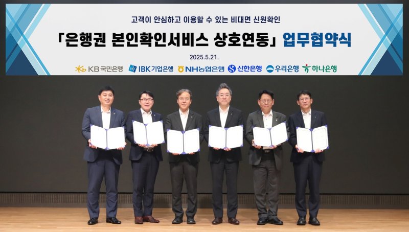 이번 협약을 통해 6대 은행은 △은행권 공동 본인확인서비스 개발 △상호 본인확인서비스 연동 △민·관 대상 공동 마케팅 추진 등 고객이 안심하고 이용할 수 있는 비대면 신원확인 서비스 제공을 위해 협력하기로 했다.
