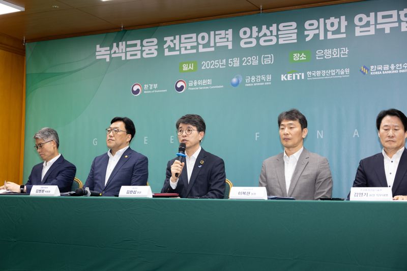 23일 환경부와 금융위원회는 서울 중구 은행회관에서 금융감독원, 한국환경산업기술원, 한국금융연수원과 녹색금융 전문인력 양성을 위한 업무협약을 체결한다고 밝혔다.