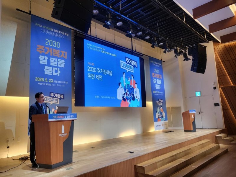 23일 열린 토론회에서 장용동 상임대표가 기조강연을 하고 있다. 한국주거복지포럼 제공