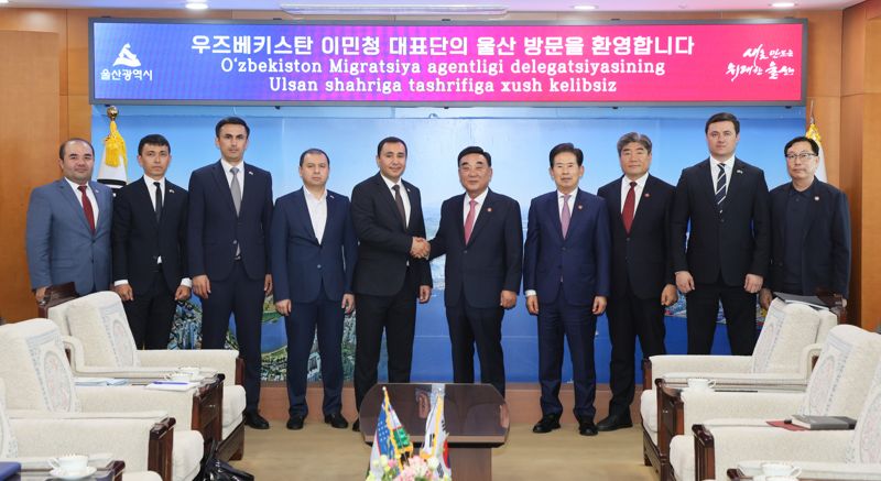 【파이낸셜뉴스 울산=최수상 기자】 우즈베키스탄 이민청 대표단이 인적자원개발 및 산업분야 협력 강화를 위해 26일 울산시를 방문했다.