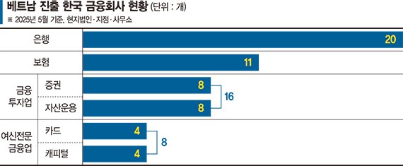 베트남에 해외점포를 낸 국내 금융회사는 총 55곳으로, 미국(62곳)에 이어 두 번째로 많다.
