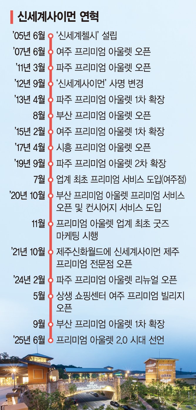 국내 첫 프리미엄 아울렛 비즈니스 모델을 도입하고 선도해 온 신세계사이먼은 지난 2005년 6월 신세계그룹과 사이먼프로퍼티가 합작 투자해 설립된 법인이다. 2007년 국내 1호 교외형 아울렛인 '여주 프리미엄 아울렛'을 오픈했다. 이후 정통 프리미엄 아울렛의 본질인 합리적인 가격에 쇼핑을 즐길 수 있는 유통 구조를 확립했다.