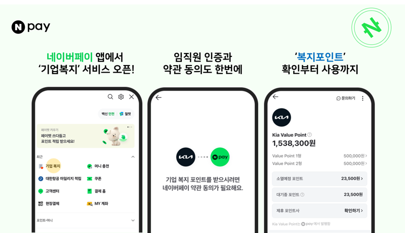 이번에 Npay는 기아㈜와 함께 '확장형 복지 포인트'를 국내 최초로 구축했다. 확장형 복지 포인트는 임직원들이 별도의 포인트 전환 절차 없이 Npay 간편결제 사용처에서 자유롭게 이용할 수 있으면서도 각 기업 별 방침에 따라 특정 사용처를 제한하거나 유효기간을 설정할 수 있도록 설계됐다. 임직원의 라이프스타일 변화에 맞춰 향후 기아 임직원들에게 지급된 복지 포인트를 건강검진 예약서비스나 타 포인트로 전환할 수 있는 등 제휴처를 유연하게 확장할 수 있는 것 이 장점이다.