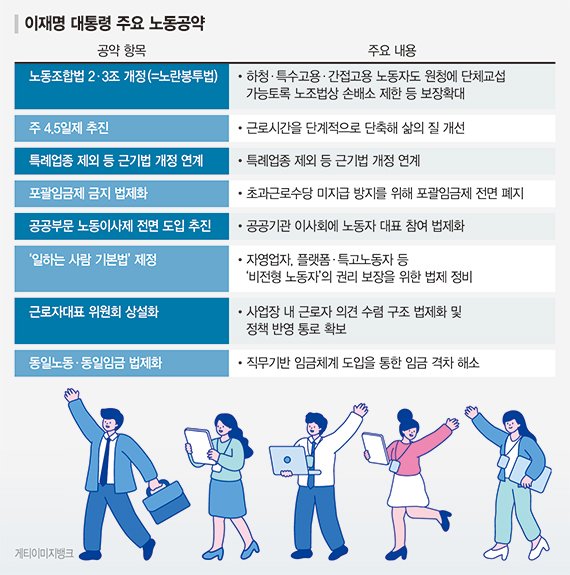 이재명 정부가 출범하자마자 노동계와 경영계 사이에 팽팽한 긴장감이 흐르고 있다. 이 대통령이 대선 당시 공약으로 내세운 '노란봉투법(노동조합법 2·3조 개정안)'과 법정 정년연장, 주 4.5일제 도입 등 굵직한 노동 관련 개혁 과제들이 임기 초부터 속도감 있게 추진될 것이란 전망 때문이다.