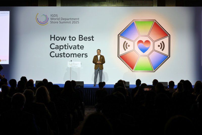 12일 정준호 롯데백화점 대표가 서울 소공동 롯데호텔 서울에서 열린 '제16회 IGDS 월드 백화점 서밋(WDSS)'에서 롯데백화점의 주요 전략을 소개하고 있다. 롯데백화점 제공