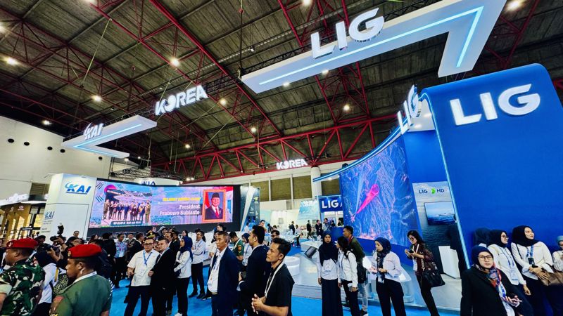 인도네시아 자카르타에서 열린 국제 방산전시회 방문객들이 지난 11일(현지시간) LIG넥스원 홍보부스를 둘러보고 있다. LIG넥스원 제공