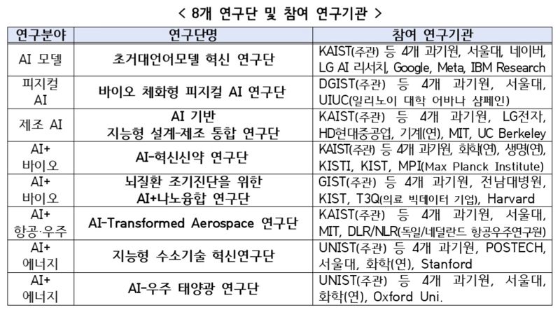 8개의 이노코어 연구단과 참여 연구기관. 과기정통부 제공