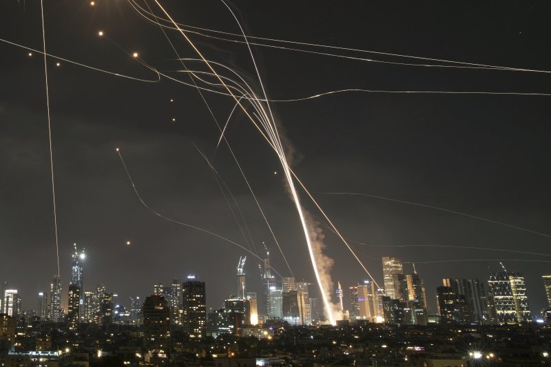 [텔아비브=AP/뉴시스] 이란은 15일(현지 시간) 이스라엘의 공격을 받는 동안엔 휴전 협상에 응하지 않겠다는 입장을 밝힌 것으로 알려졌다. 사진은 지난 13일 이란이 이스라엘 텔아비브에 미사일로 보복 공격을 하고 있는 모습. 2025.06.16. /사진=뉴시스