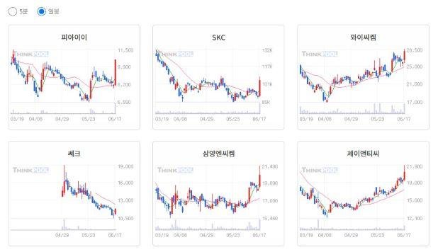 ※ [소소뱅크] 이슈 관련 종목 : 피아이이, SKC, 와이씨켐, 쎄크, 삼양엔씨켐