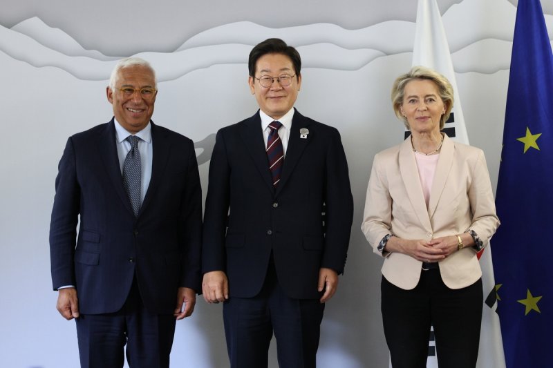 【파이낸셜뉴스 캘거리(캐나다)=서영준 기자】 주요 7개국(G7) 정상회의 참석을 위해 캐나다 카나나스키스를 방문 중인 이재명 대통령은 17일(현지시간) 안토니우 코스타 EU 정상회의 상임의장과 우르술라 폰 데어 라이엔 EU 집행위원장과 정상회담을 가졌다.