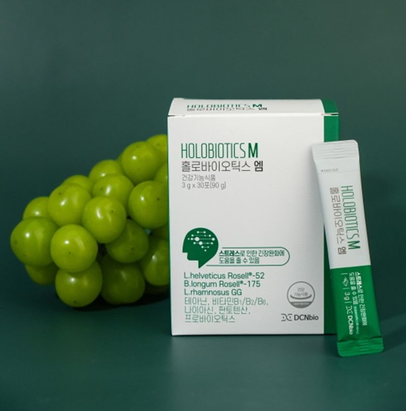 이 제품은 프로바이오틱스 3종과 함께 스트레스 해소, 긴장 완화 등에 도움을 주는 L-테아닌, 활력 증진을 위한 비타민B군이 복합적으로 배합됐다. 홀로바이오틱스M는 샤인머스캣 분말이 함유돼 맛을 더했으며 소비자가 매일 간편하게 섭취하도록 1개월분(30포)의 스틱 형태로 포장돼 휴대성도 높였다.