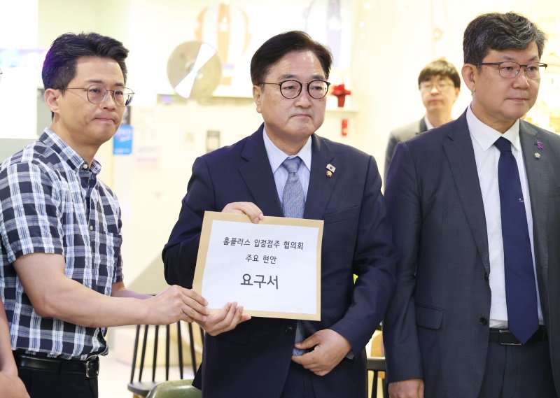 우 의장은 이 자리에서 "삶의 터전을 지키기 위해 하루하루를 절박한 심정으로 보내고 계실 여러분께 깊은 위로의 말씀 드린다"며 "MBK의 무책임한 태도 속에서 홈플러스의 직간접적으로 고용된 10만 국민의 생계가 위협받고 있고, 이미 그 피해는 심각한 수준"이라고 우려했다.