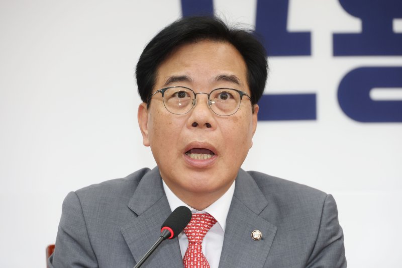 송언석 국민의힘 원내대표가 19일 오전 서울 여의도 국회에서 열린 비리백화점 이재명 정부 인사청문회 대책회의에서 발언하고 있다. 뉴스1