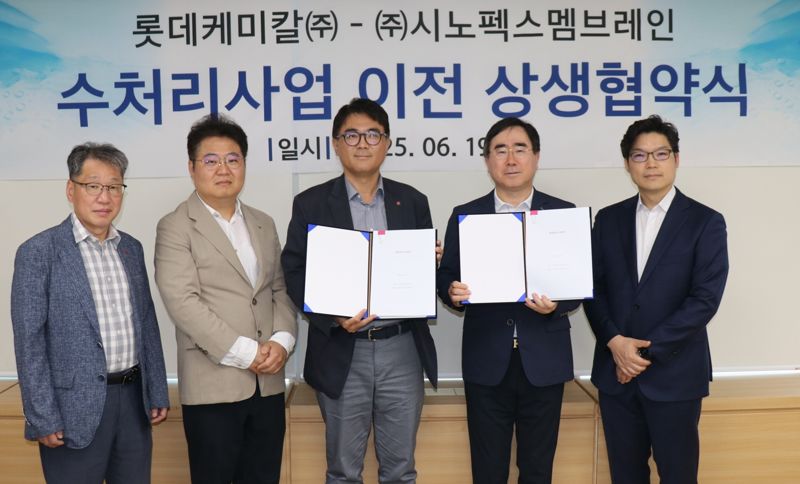 이번 계약은 대기업과 중견기업의 기술이전을 통한 상생협력 사례로 롯데케미칼 물 산업 클러스터 내 수처리사업 전체를 시노펙스 100% 자회사 시노펙스멤브레인에서 인수하는 영업양수도 방식으로 진행된다.