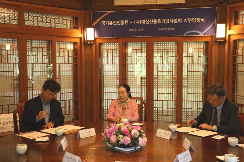 국가유산진흥원은 대산신용호기념사업회와 국가무형유산 전승 활동을 지원하기 위한 기부 약정을 체결했다고 20일 밝혔다.