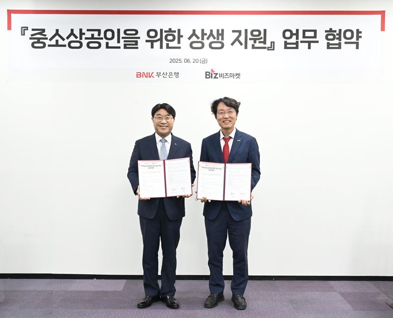 이날 협약식에는 부산은행 방성빈 은행장을 비롯해 비즈마켓 허탁 대표 등 관계자들이 참석했다.