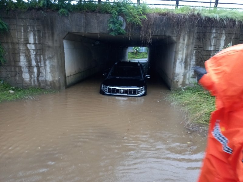 20일 오전 5시 47분께 경기 고양시 대화동 한 지하터널에서 차량이 침수된 모습. 경기도북부소방재난본부 제공.