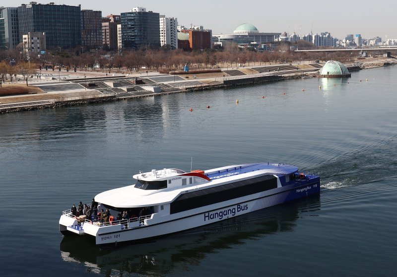 수상 대중교통 한강버스가 9월 정식운항을 앞둔 가운데 시민 대상 탑승체험 행사를 연다. 참가자들은 7월 1일부터 진행할 체험운항에 참여하게 된다. 지난 2월 한강버스가 서울 여의도 부근 한강을 지나고 있다. 뉴스1