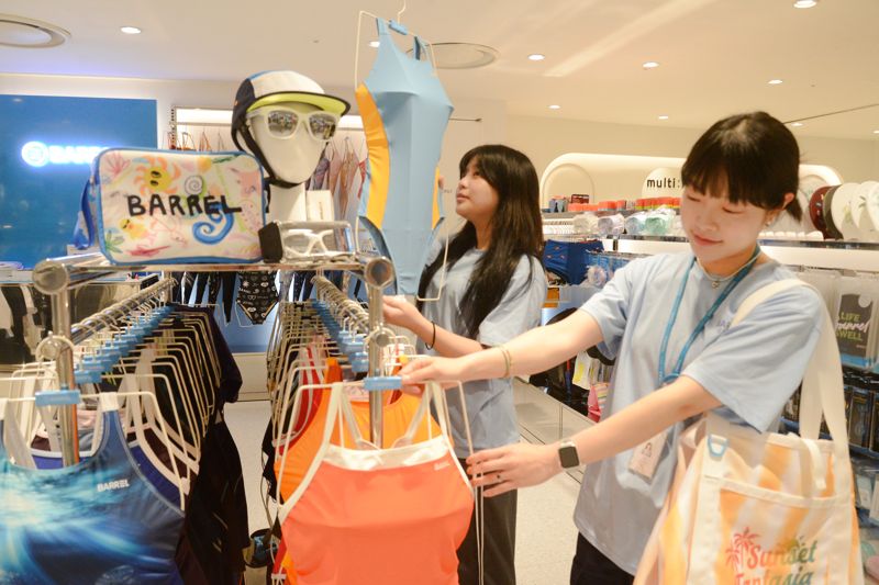 롯데백화점 부산본점 7층 '배럴' 매장에서 본격적인 바캉스 시즌을 맞아 다양한 스타일의 수영복을 선보이고 있다. 롯데백화점 제공