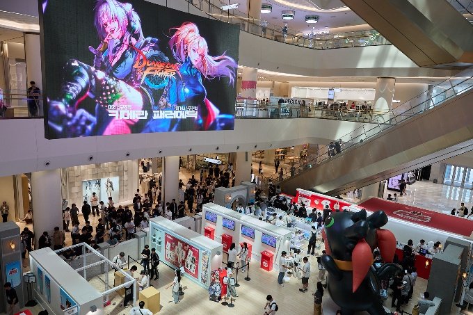29일 업계에 따르면 넥슨은 대표 IP인 '던전앤파이터(던파)', '마비노기', '메이플스토리'를 바탕으로 오프라인 체험 기회를 확대하며 팬덤 저변을 넓히고 있다. '던전앤파이터'는 지난 13일부터 22일까지 서울 롯데월드타워·몰에서 열린 공식 팝업스토어 '스노우메이지'를 통해 약 1만5000명의 방문객을 끌어모았다. 특히 업데이트 직후 전주 대비 PC방 점유율이 61.9% 상승, 6월 7일 기준 역대 최고 수치인 9.15%를 기록하며 게임 내 흥행과 맞물린 시너지 효과를 냈다. 넥슨은 이 팝업을 통해 게임 속 관심도를 오프라인에서도 이어가며 '던파' 브랜드의 몰입 경험을 강화했다는 평가다. '마비노기'는 서비스 21주년을 맞아 3000명 규모의 팬 파티 '뉴 라이즈(NEW RISE)'를 일산 킨텍스에서 개최했다. 또 다른 대표작 '메이플스토리'는 수원 KT위즈파크에서 열린 프로야구 브랜드 데이와 연계, 캐릭터 시구와 콘셉트 유니폼, 굿즈 증정 등으로 스포츠 팬과의 접점을 넓혔다.