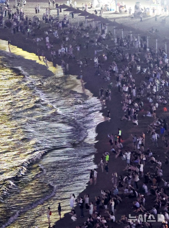 올 여름 부산지역에 지난해보다도 19일나 빨리 열대야가 찾아온 가운데 부산 광안리해수욕장을 찾은 시민과 관광객들이 더위를 식히고 있다. 뉴시스 제공