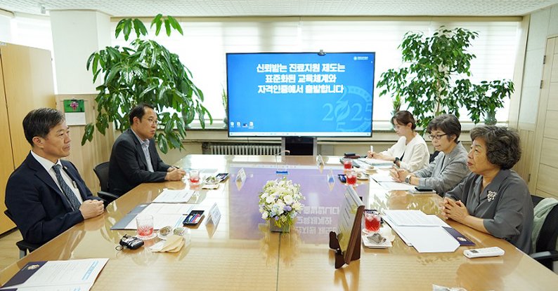 이형훈 보건복지부 2차관(왼쪽 첫번째)이 8일 오후 서울 중구 대한간호협회를 방문해 신경림 간호협회 회장과 면담하고 있다. 대한간호협회 제공