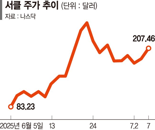 8일 한국예탁결제원에 따르면 국내 개인투자자들은 서클이 지난달 5일(현지시간) 미국 뉴욕 증시에 상장한 후, 전날까지 6억7657만달러(약 9200억원)어치를 사들이며 순매수 종목 1위에 올려놓았다. 같은 기간 서클 주가는 150% 가까이 올랐다. 서클의 스테이블코인(USDC) 사업 파트너인 코인베이스와 로빈후드도 각각 순매수 기준 4위(1억5191만달러), 11위(6942만달러)에 이름을 올렸다.