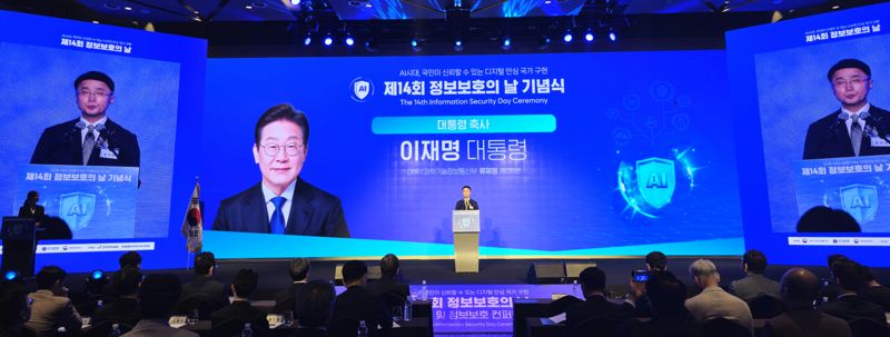 이재명 대통령은 과학기술정보통신부와 국가정보원, 행정안전부가 한국인터넷진흥원(KISA), 한국정보보호산업협회(KISIA) 등과 함께 9일 서울드래곤시티호텔에서 개최한 ‘제14회 정보보호의 날 기념식’에서 류제명 과기정통부 2차관이 대독한 축사를 통해 이 같이 말했다.