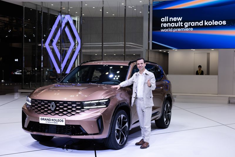 르노코리아 대표이사를 성공적으로 마치고 오는 9월 1일자로 르노그룹 인도를 총괄하는 최고경영자 중책을 맡게 된 스테판 드블레즈 현 대표. 2024 부산모빌리티쇼에서 처음 공개한 그랑 콜레오스와 기념 촬영을 하고 있다. 르노코리아 제공