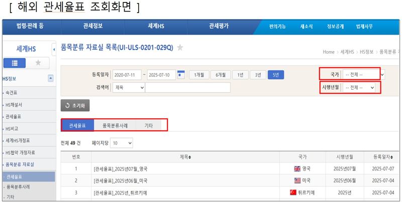 ‘세계 HS정보시스템’ 개편...최신 해외 관세율표 및 품목분류 사례 파일 저장 기능 제공