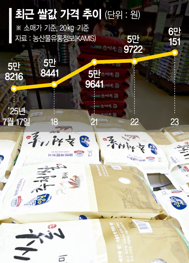 올 들어 처음으로 쌀 소매가격(20㎏ 기준)이 6만원을 돌파하면서 '쌀값 대란'이 우려되고 있다. 지난해 쌀 생산량 감소와 맞물려 최근 폭우로 벼 침수 피해가 확산되면서 쌀값 상승이 장기화될 가능성이 나오고 있다.