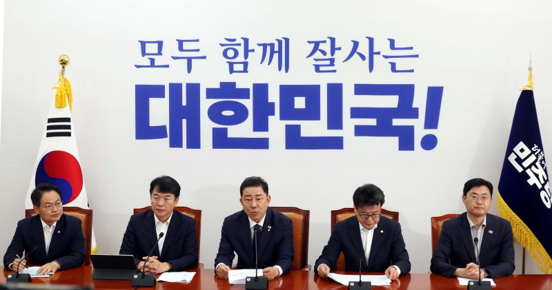 김병기 더불어민주당 당대표 직무대행 겸 원내대표가 29일 오전 서울 여의도 국회에서 열린 원내대책회의에서 발언을 하고 있다. 뉴시스