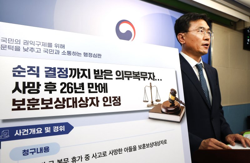 조소영 권익위 중앙행심위원장은 "26년 전 군 의무복무 중 안타깝게 사망한 고인에 대해 사망에 이르게 된 전반적인 경위와 과정을 고려해 늦게나마 보훈보상대상자로 인정했다"며 "앞으로도 관련 법령의 목적과 취지에 부합하도록 자료들을 종합적으로 검토해 국가를 위해 희생한 분들의 권익구제를 위해 최선을 다하겠다"고 전했다.