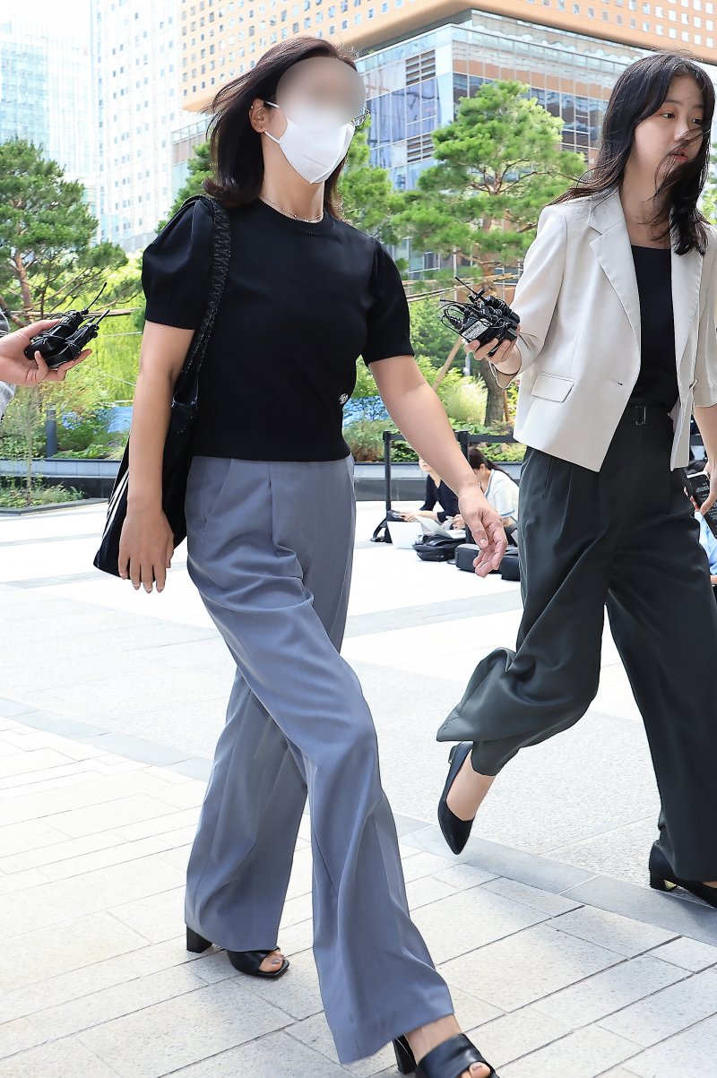 '김건희 집사' 김예성 씨의 아내 정 모 씨가 23일 서울 종로구 김건희 특검팀(특별검사 민중기)으로 소환 조사에 출석하고 있다. 뉴스1 /사진=뉴스1화상