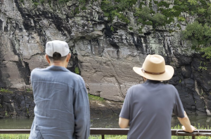 울산광역시 울주군 대곡리 반구대 암각화 앞에서 시민들이 살펴보고 있다. 뉴시스