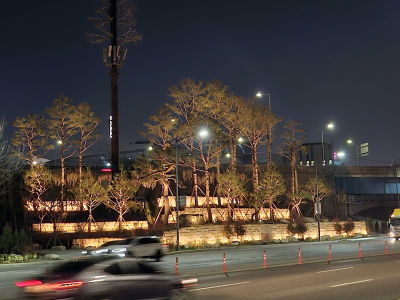 특히, 1987년 올림픽대로 준공 기념으로 식재된 대형 소나무를 복정역 인근 녹지로 이식해 역사성과 상징성을 더했으며, 야간에는 소나무와 성곽돌을 강조한 경관조명으로 낮과 밤 모두 품격 있는 경관을 완성했다.