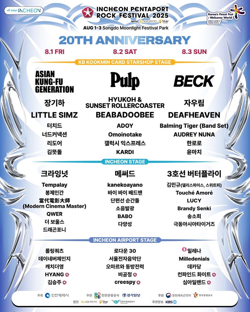 【파이낸셜뉴스 인천=한갑수 기자】 ‘2025년 인천펜타포트 락 페스티벌’이 8월 1∼3일 송도달빛축제공원에서 열린다.