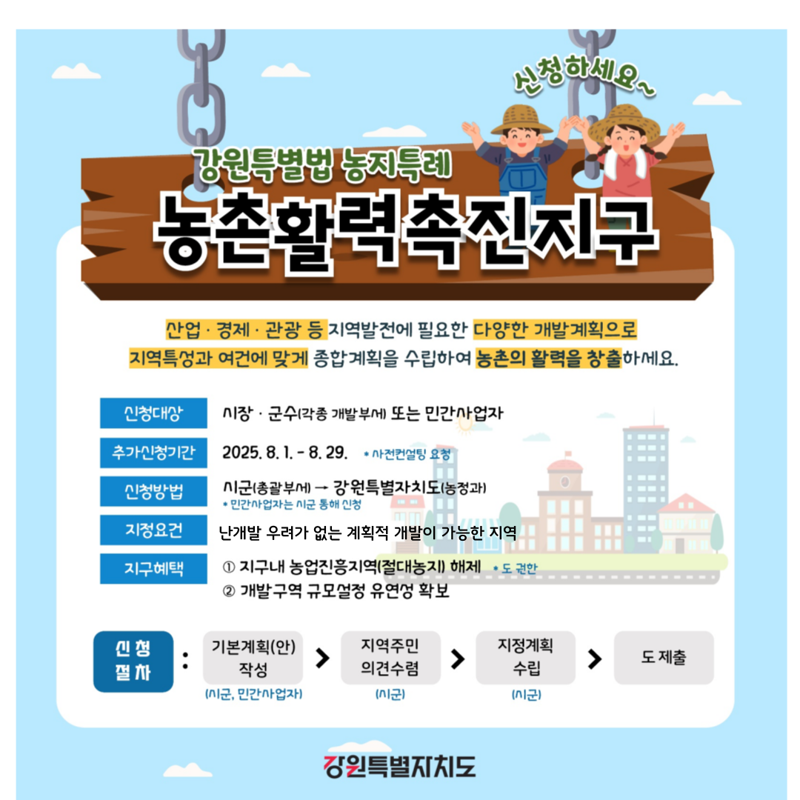 강원특별법 농지특례 농촌활력촉진지구 안내문.