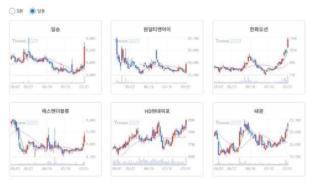 ※ [조선] 이슈 관련 종목 : 일승, 원일티엔아이, 한화오션, 에스앤더블류, HD현대미포