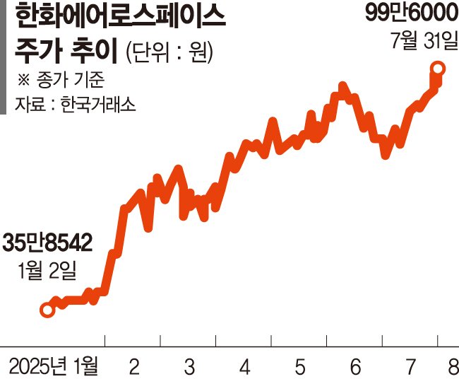 한화에어로스페이스가 사상 최대 실적 달성로 장중 100만원을 돌파하며 '황제주' 대열에 합류했다. 실적 호조와 방산·조선부문의 수익성 개선 기대감이 맞물리면서 주가가 강세를 보이고 있다.