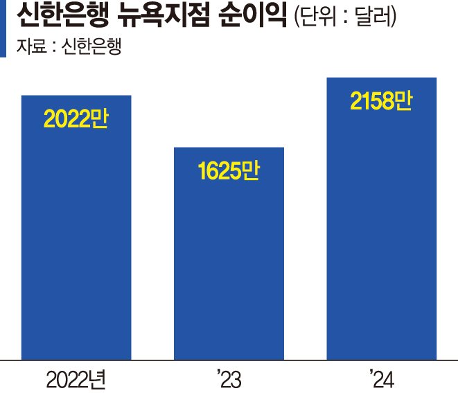 이 같은 전략으로 신한은행 뉴욕지점은 지난해 순이익 2158만달러를 기록했다. 2023년(1625만달러)보다 500만달러 이상 늘었다. 올해 상반기에는 900만달러의 이익을 달성했는데 일회성 비용을 고려하면 지난해보다 실적이 좋았다는 평가다.